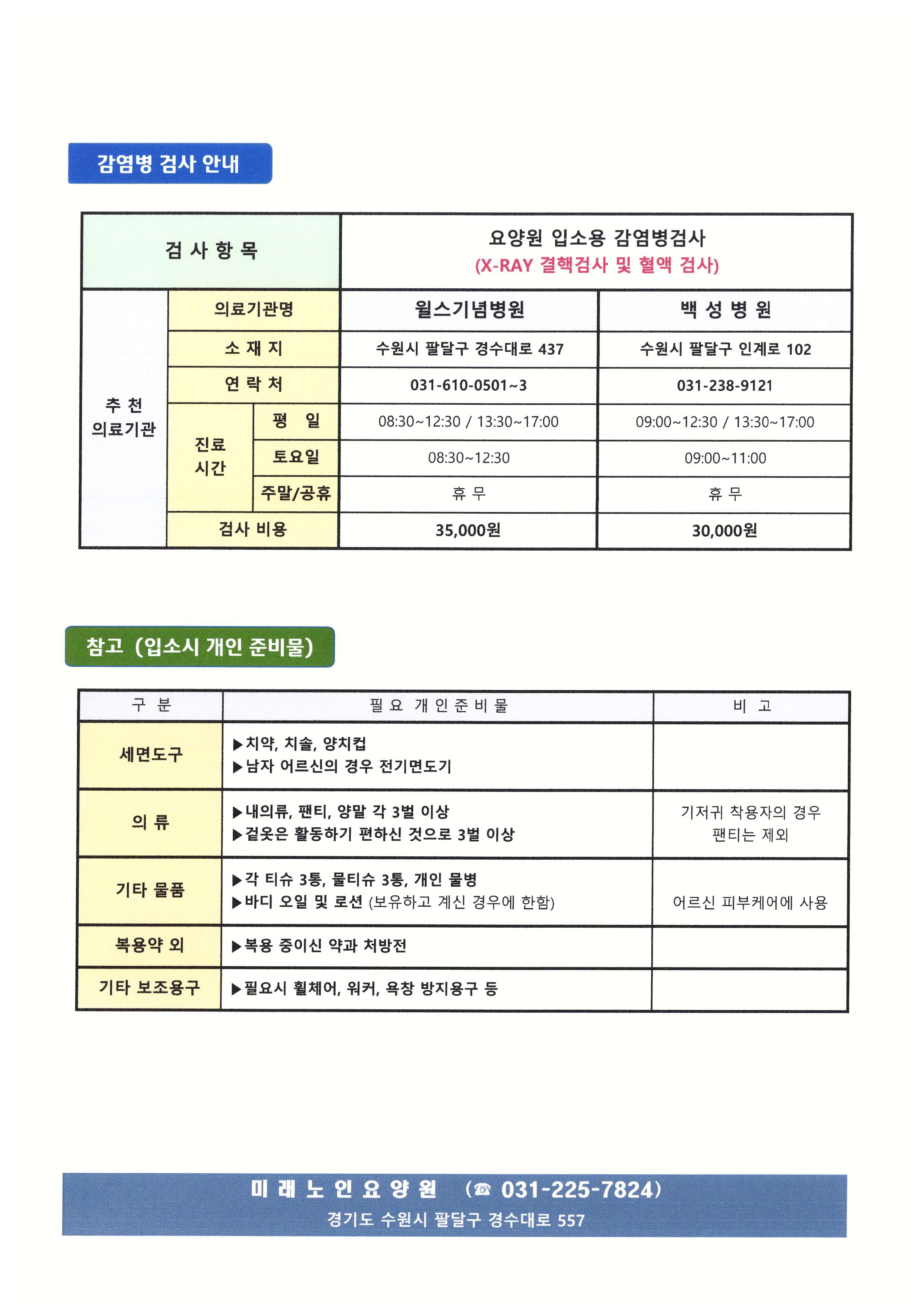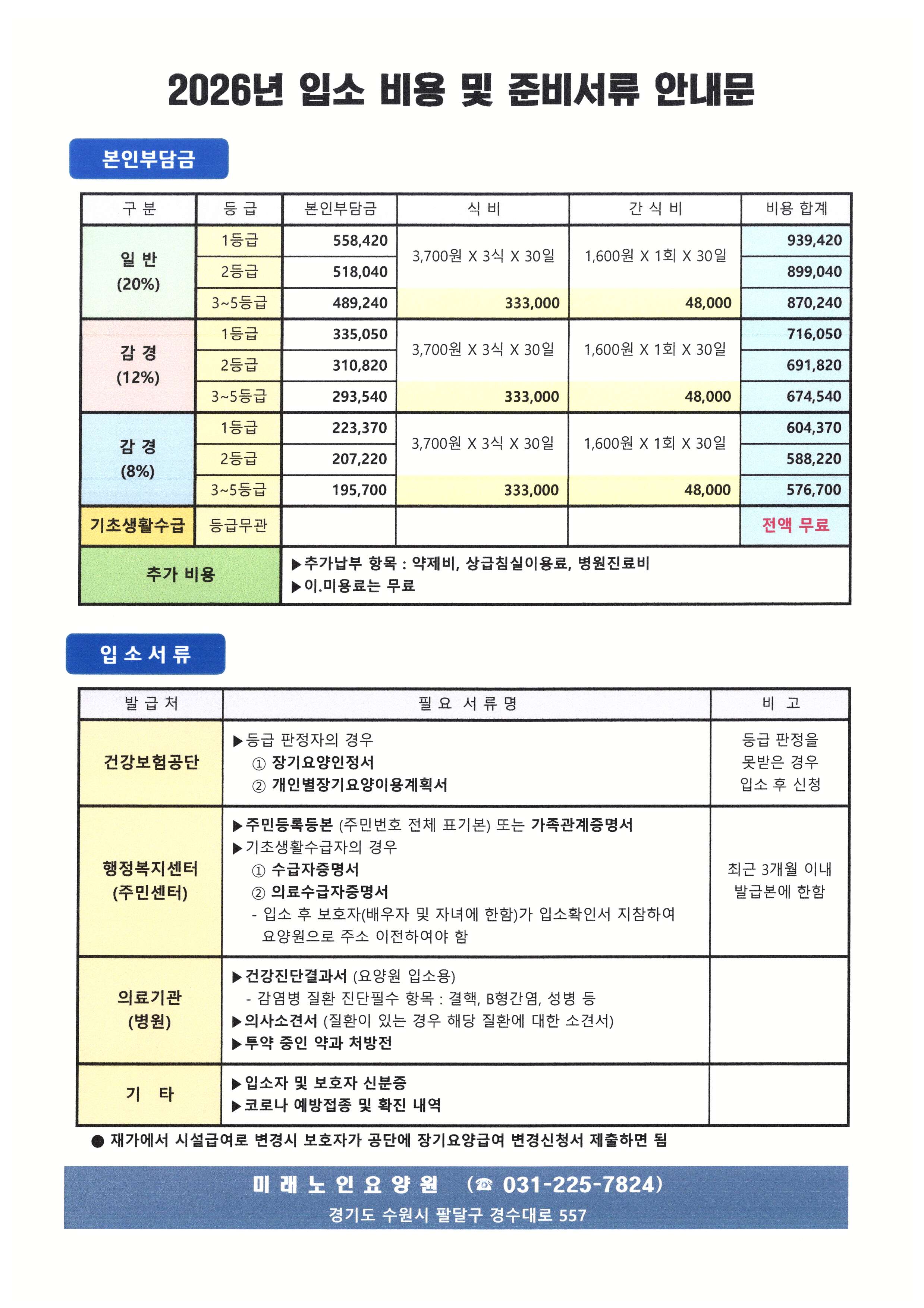 2026년 미래노인요양원 입소 안내문